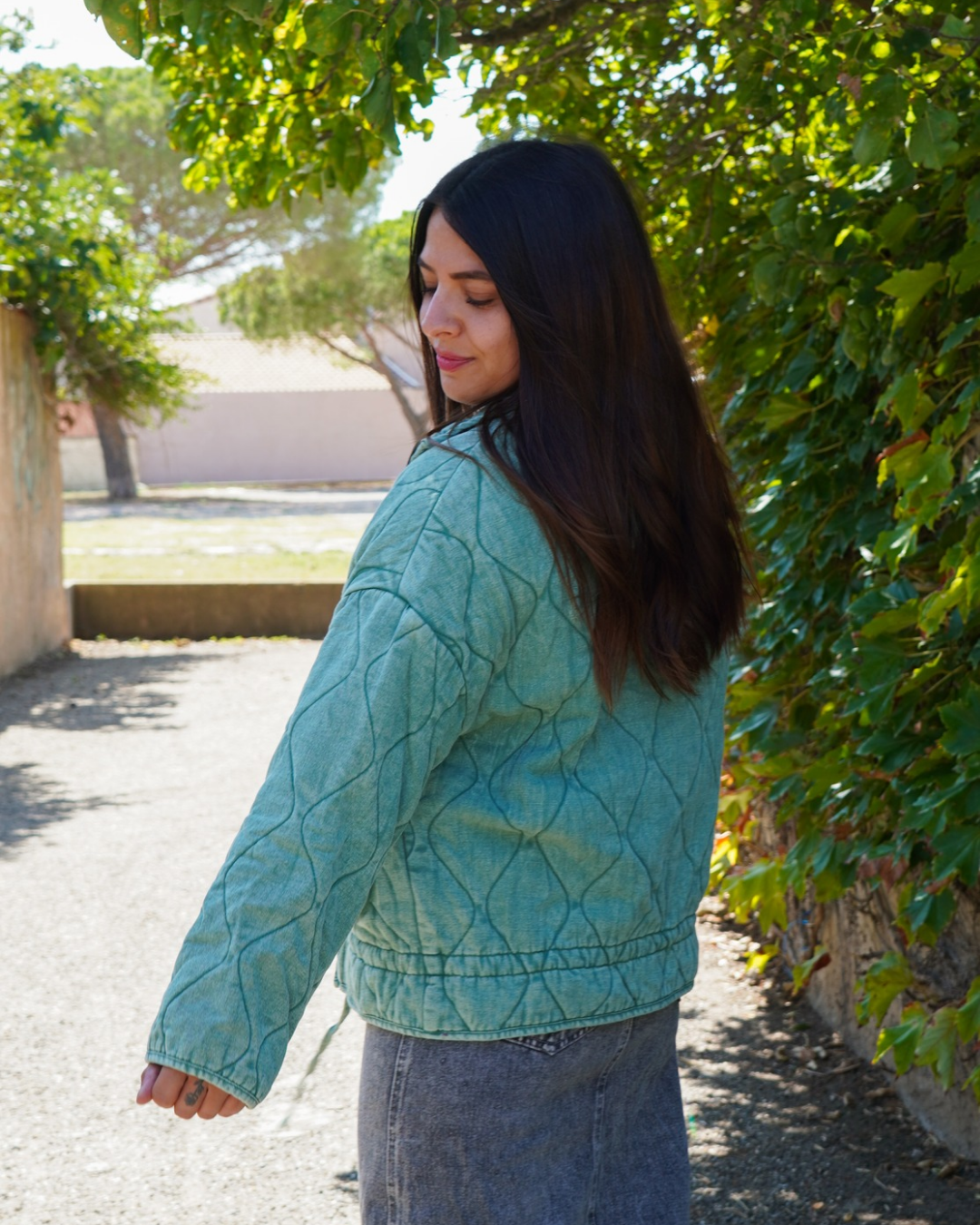 - Veste matelassée avec une texture denim délavé,